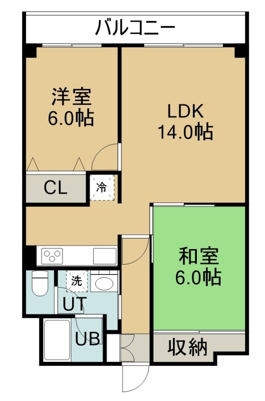 2LDK(56.08m²)└ 2階:LDK14帖 洋室6帖 和室6帖