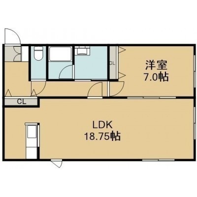 1LDK(44.79m²)└ 1階:LDK18.75帖 洋室7帖