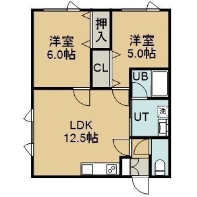 2LDK(58.38m²)└ 1階:LDK12.5帖 洋室6帖 洋室6帖