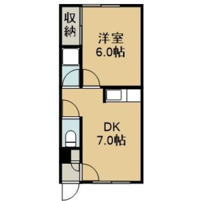 1DK(28.5m²)└ 1階:DK7帖 洋室6帖