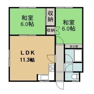 2LDK(49.59m²)└ 2階:LDK11.3帖 洋室6帖 和室6帖