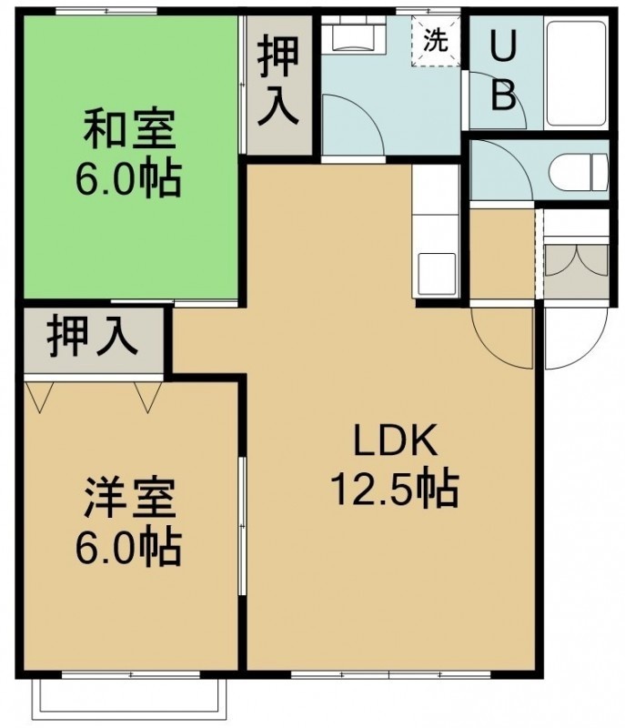 2LDK(56.3m²)└ 2階:LDK12.5帖 洋室6帖 和室6帖