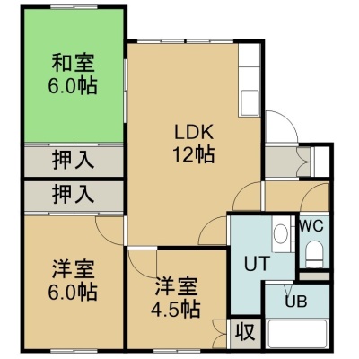 3LDK(65.06m²)└ 2階:LDK12帖 洋室6帖 洋室6帖 洋室4.5帖