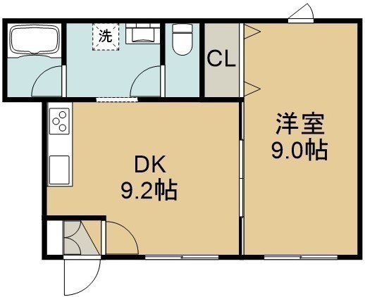 1DK(42.42m²)└ 1階:DK9.2帖 洋室9帖