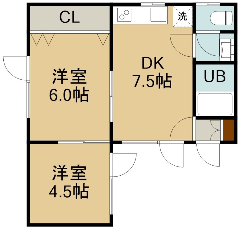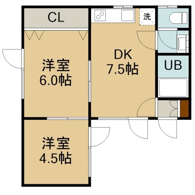 2DK(38.51m²)└ 2階:DK7.5帖 洋室6帖 洋室4.5帖