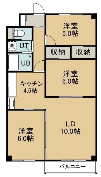 3LDK(70.24m²)└ 3階:LD10帖 K4.5帖 洋室6帖 洋室6帖 洋室5帖