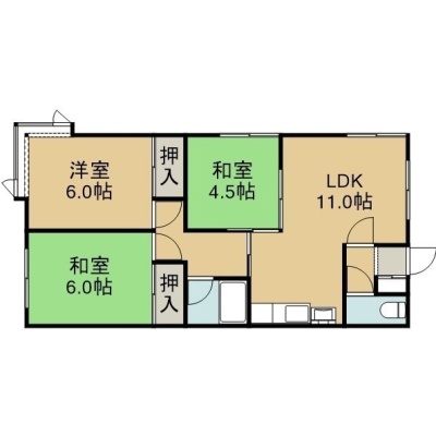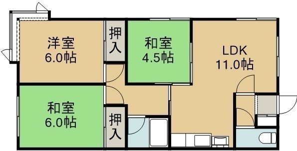 3LDK(59.5m²)└ 3階:LDK11帖 洋室6帖 和室6帖 和室4.5帖