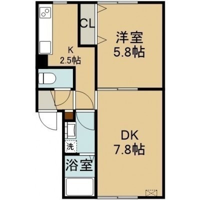 1LDK(36.36m²)└ 2階:LD7.8帖 K2.5帖 洋室5.8帖