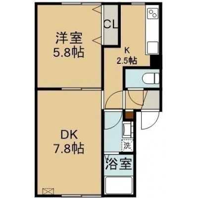 1LDK(36.36m²)└ 2階:LD7.8帖 K2.5帖 洋室5.8帖