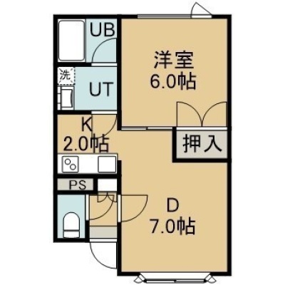 1DK(42.97m²)└ 1階:D7帖 K2帖 洋室6帖