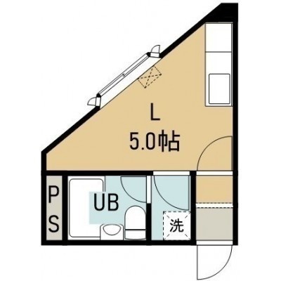 ワンルーム(23m²)└ 4階:L5帖