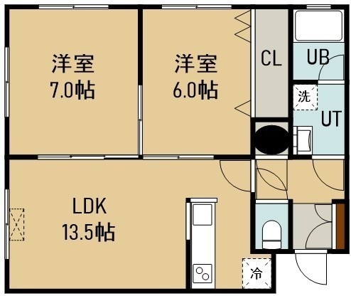 2LDK(58.18m²)└ 1階:LDK13.5帖 洋室7帖 洋室6帖