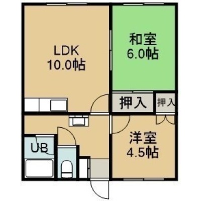 2LDK(46.28m²)└ 2階:LDK10帖 和室6帖 洋室4.5帖