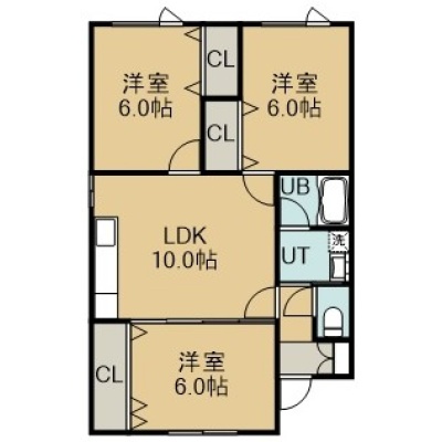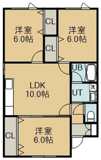 3LDK(61.15m²)└ 1階:LDK10帖 洋室6帖 洋室6帖 洋室6帖