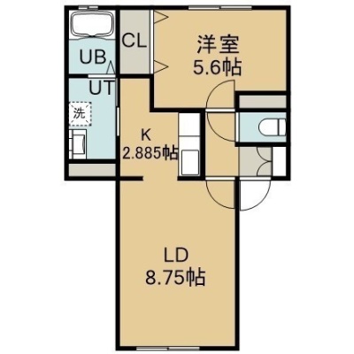 1LDK(42.03m²)└ 2階:LD8.75帖 K2.88帖 洋室5.6帖