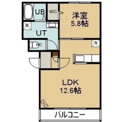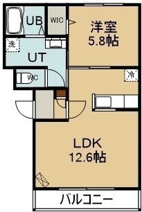 1LDK(43.44m²)└ 2階:LDK12.7帖 洋室5.8帖