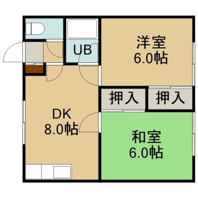 2DK(43.47m²)└ 1階:DK8帖 洋室6帖 和室6帖