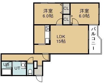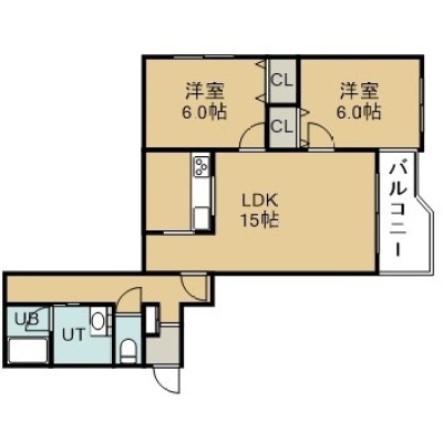 2LDK(63m²)└ 6階:LDK15帖 洋室6帖 洋室6帖