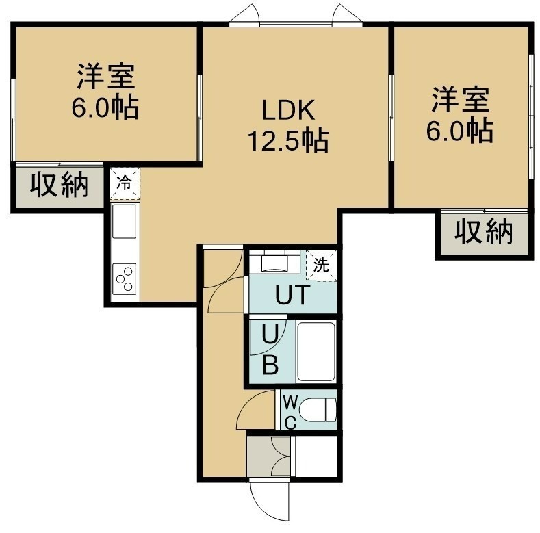 2LDK(56m²)└ 2階:LDK12.5帖 洋室6帖 洋室6帖