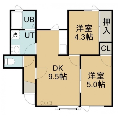 2DK(50.9m²)└ 2階:DK9.5帖 和室5帖 洋室4.3帖