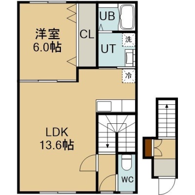 1LDK(49.27m²)└ 2階:LDK13.6帖 洋室6帖