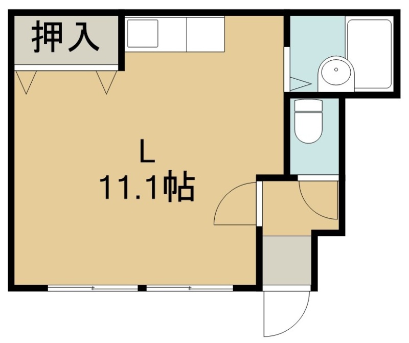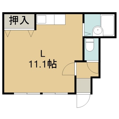 ワンルーム(21.51m²)└ 1階:洋室11.1帖