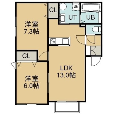 2LDK(57.5m²)└ 2階:LDK13帖 洋室7.3帖 洋室6帖