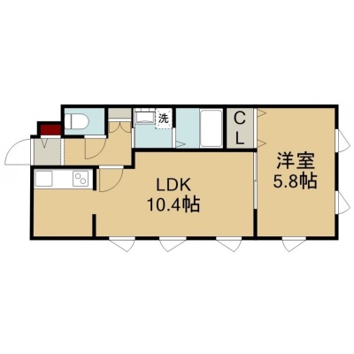 1LDK(37.5m²)└ 2階:LDK10.4帖 洋室5.8帖