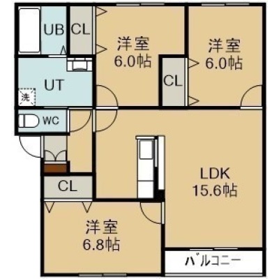 3LDK(76.24m²)└ 3階:LDK15.6帖 洋室6.8帖 洋室6帖 洋室6帖
