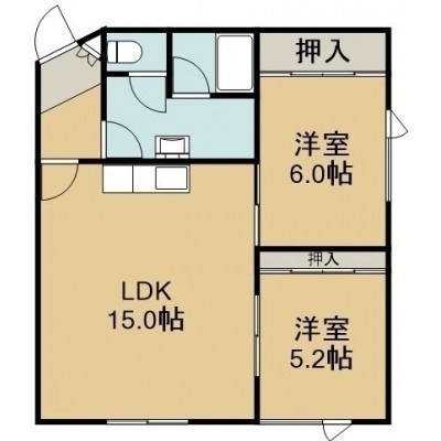 2LDK(59.51m²)└ 2階:LDK15帖 洋室6帖 洋室5.2帖