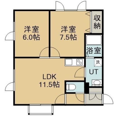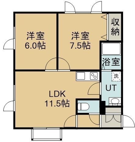 2LDK(52.9m²)└ 2階:LDK11.5帖 洋室7.5帖 洋室6帖