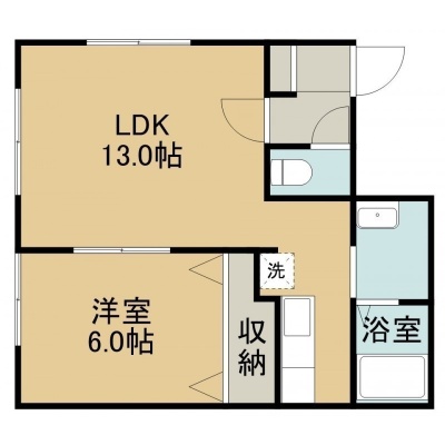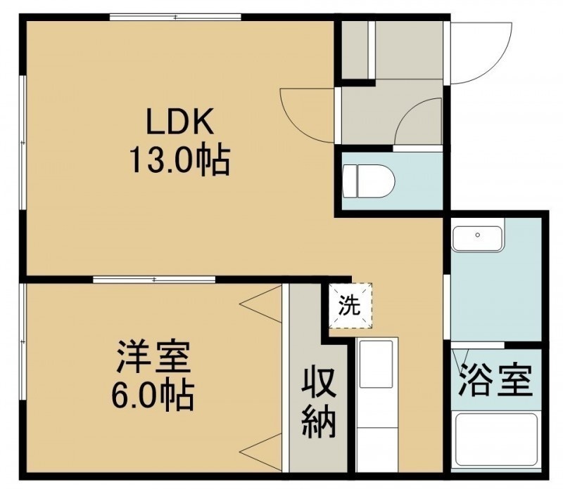1LDK(46.06m²)└ 2階:LDK13帖 洋室6帖