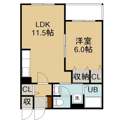 1LDK(43.45m²)└ 4階:LDK11.5帖 洋室6帖