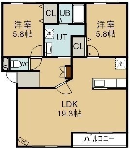 2LDK(66.39m²)└ 4階:LD15.5帖 K3.8帖 洋室5.8帖 洋室5.8帖