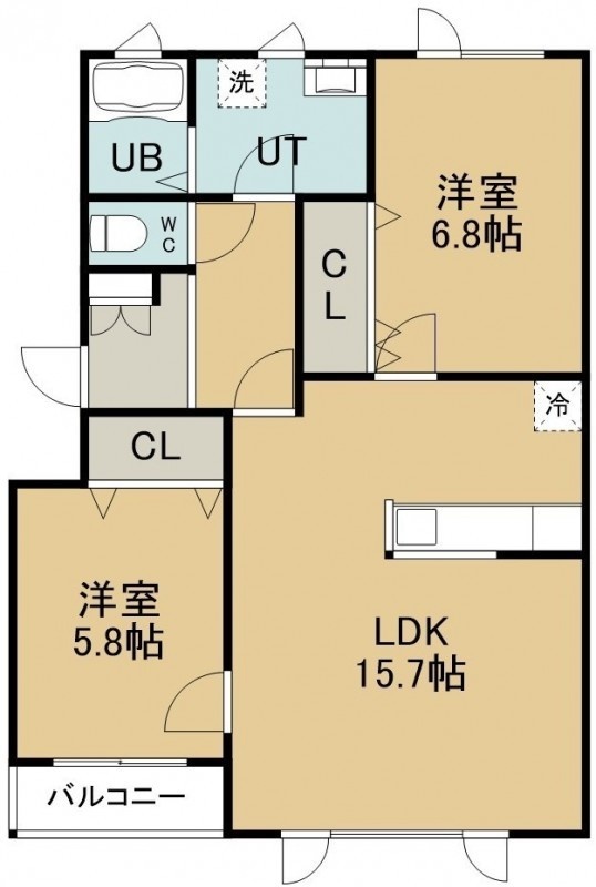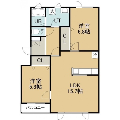 2LDK(64.35m²)└ 1階:LDK15.7帖 洋室6.8帖 洋室5.8帖