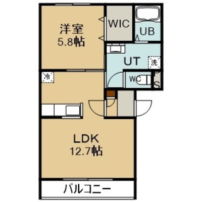1LDK(43.44m²)└ 2階:LDK12.7帖 洋室5.8帖