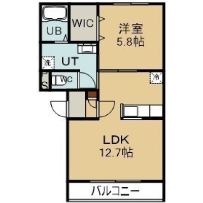 1LDK(43.44m²)└ 3階:LDK12.7帖 洋室5.8帖