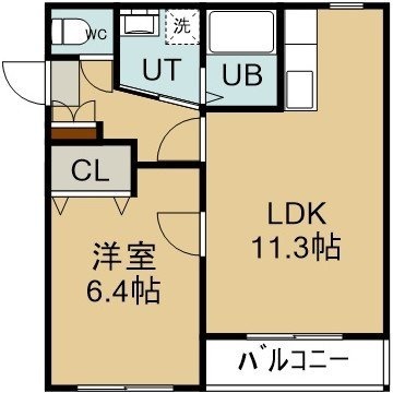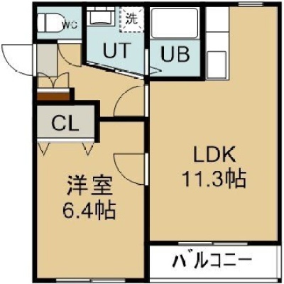 1LDK(42.12m²)└ 4階:LDK11.3帖 洋室6.4帖