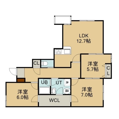 3LDK(79.55m²)└ 1階:LDK12.7帖 洋室7帖 洋室6帖 洋室5.7帖