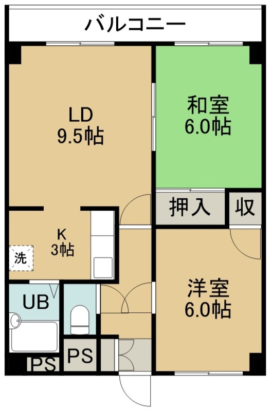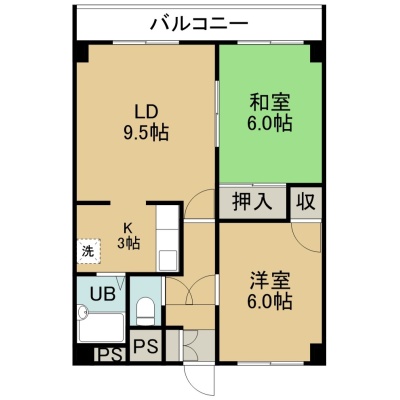 2LDK(50.4m²)└ 3階:LD9.5帖 K3帖 洋室6帖 和室6帖