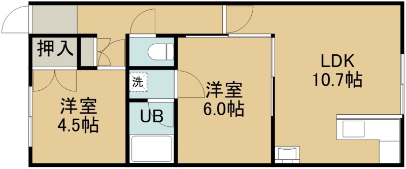 2LDK(47.52m²)└ 1階:LDK10.7帖 洋室6帖 洋室4.5帖