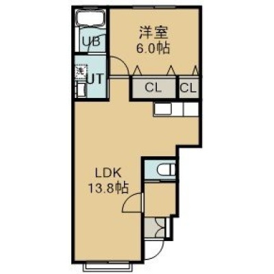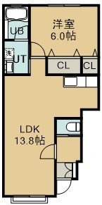 1LDK(43.05m²)└ 1階:LDK13.8帖 洋室6帖