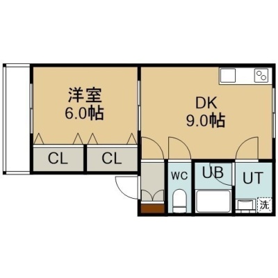 1DK(34.3m²)└ 3階:DK9帖 洋室6帖
