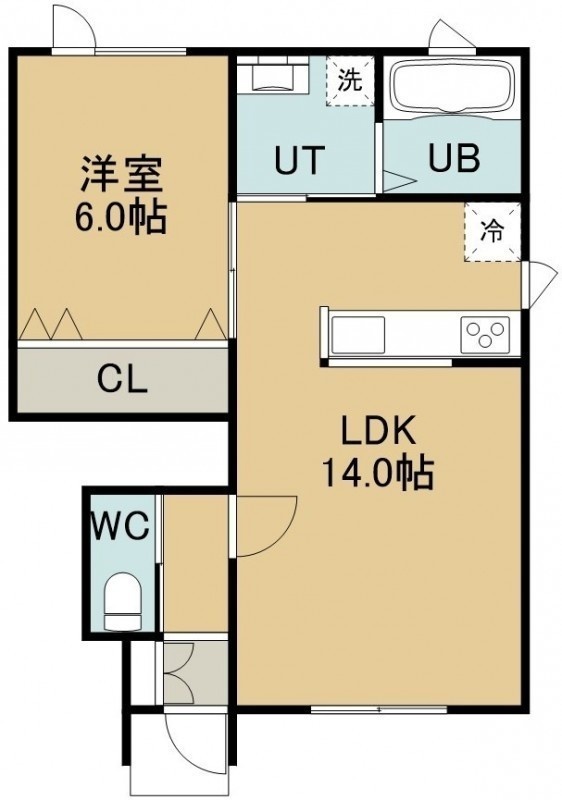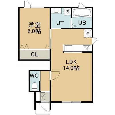 1LDK(45.52m²)└ 1階:LDK14帖 洋室6帖