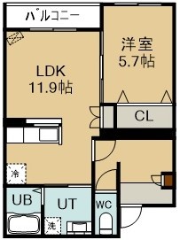 1LDK(43.71m²)└ 1階:LDK11.9帖 洋室5.7帖