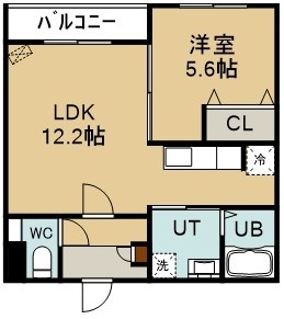 1LDK(42.62m²)└ 4階:LDK12.2帖 洋室5.6帖