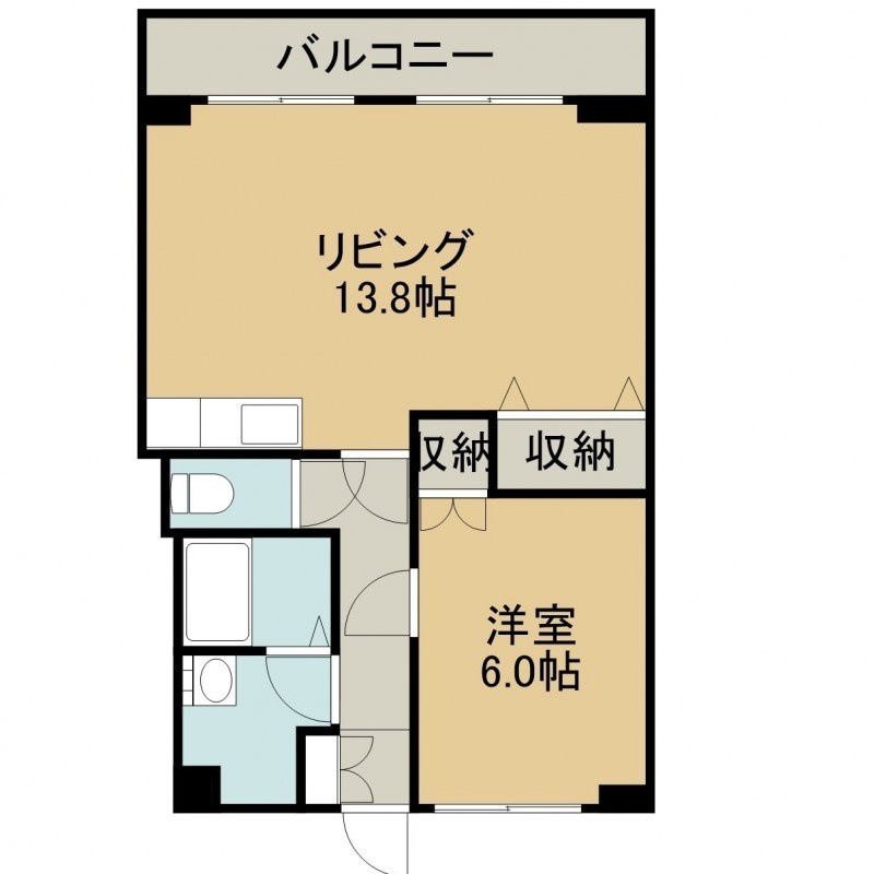 1LDK(45m²)└ 6階:LDK13.8帖 洋室6帖
