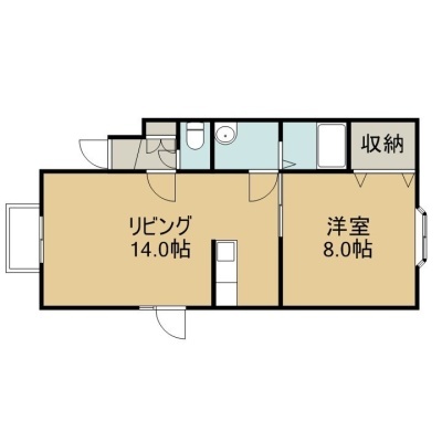 1LDK(45.64m²)└ 2階:LDK14帖 洋室8帖 和室6帖