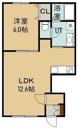 1LDK(41.42m²)└ 1階:LDK12.6帖 洋室6帖