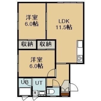 2LDK(54.49m²)└ 1階:LDK11.5帖 洋室6帖 洋室6帖